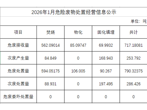 2026年1月危險(xiǎn)廢物處置經(jīng)營(yíng)信息公示